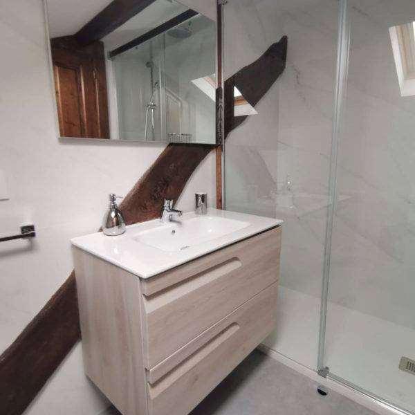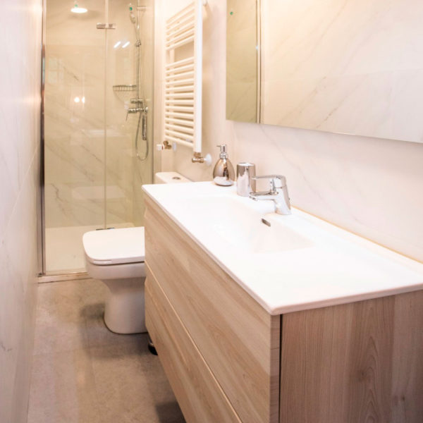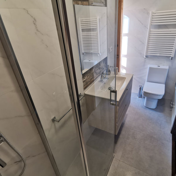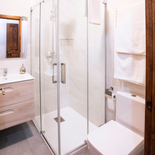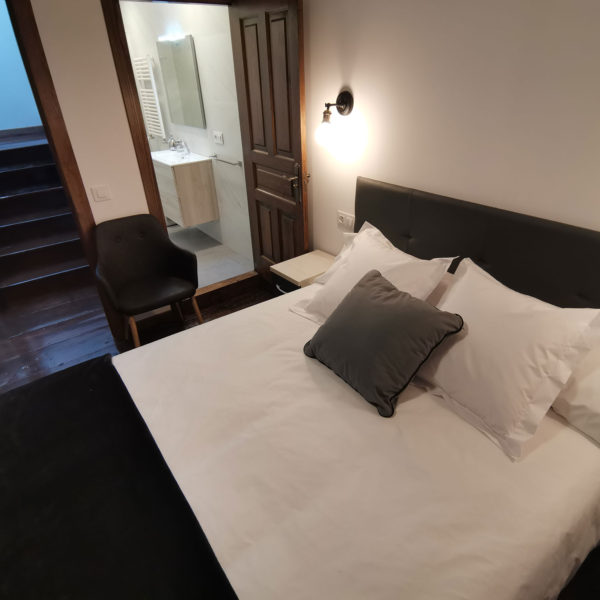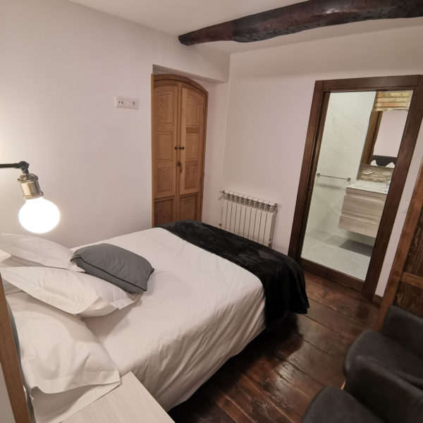 Consta de una habitación con una cama de 150 cm, con 2 mesitas, armario empotrado, 2 butacas y un baño con plato de ducha con accesorios.